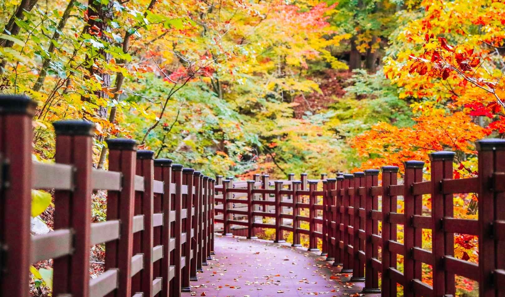 10월 중순부터 11월 초까지가 단풍 절정 시기예요. 이 시기에 방문하시면 화려한 가을 숲을 만끽하실 수 있어요.