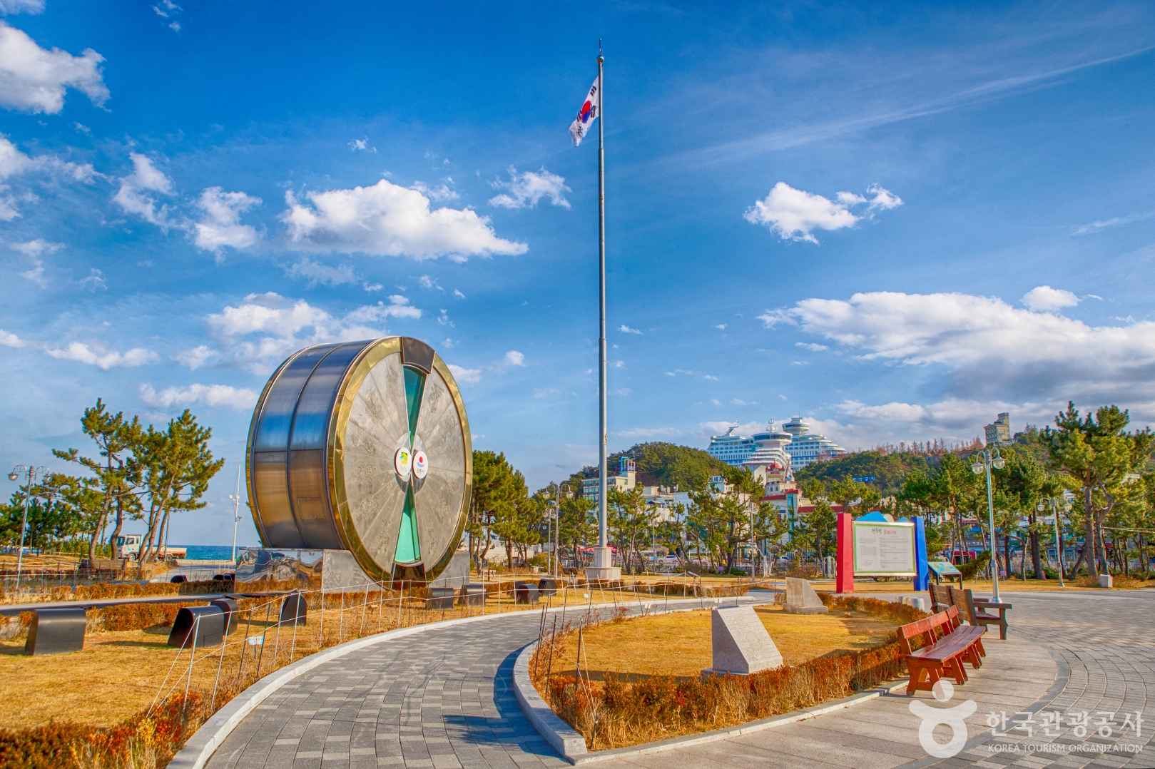 동해에서 떠오르는 해를 상징하는 곡선형 유리와 32미터의 기차 레일은 영원한 시간의 흐름을 표현합니다. 공원 주변 12지상의 조각은 고대 우리의 시간 체계인 2시간 단위의 전통 시간 문화를 형상화한 것이에요.