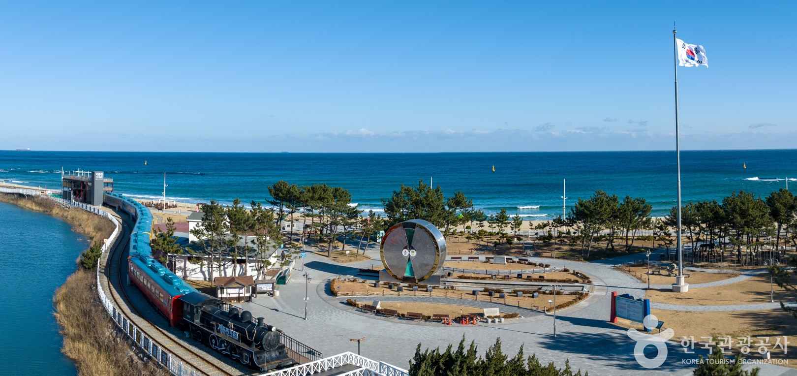 강릉 정동진의 명물, 모래시계공원은 1999년, 새천년을 기념해 조성된 이색적인 테마 공원이에요. 드라마 '모래시계'의 촬영지로도 유명해진 이곳은 동해 바다와 이어지는 정동진해변과 소나무 숲이 조화를 이루며 산책을 즐기기 딱 좋은 조용하고 정적인 힐링 공간이랍니다.