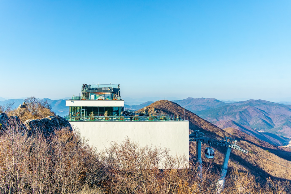 케이블카 탑승 시간은 약 10분 이내이며, 하차 후 전망대까지는 평지 산책로로 편하게 연결돼 있어요.