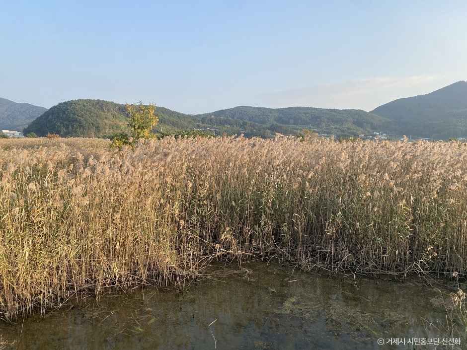 거제에도 이런 풍경이 있었나 싶을 만큼, 오수마을 억새군락지는 도심에서 벗어나 자연의 고요함과 탁 트인 경관을 즐기기에 더없이 좋은 곳이에요. 억새가 바람에 흩날리고, 갈대가 함께 춤추는 이곳은 바다와 강이 만나는 간척지 위에 조성되어 어촌과 농촌이 공존하는 특별한 분위기를 자아냅니다. 특히 호수 안 물고기들의 움직임갈대 사이로 날아드는 새들은 자연의 생동감을 그대로 느낄 수 있어요. 말 그대로, 가을을 마음껏 마주하는 공간이랍니다 🍂