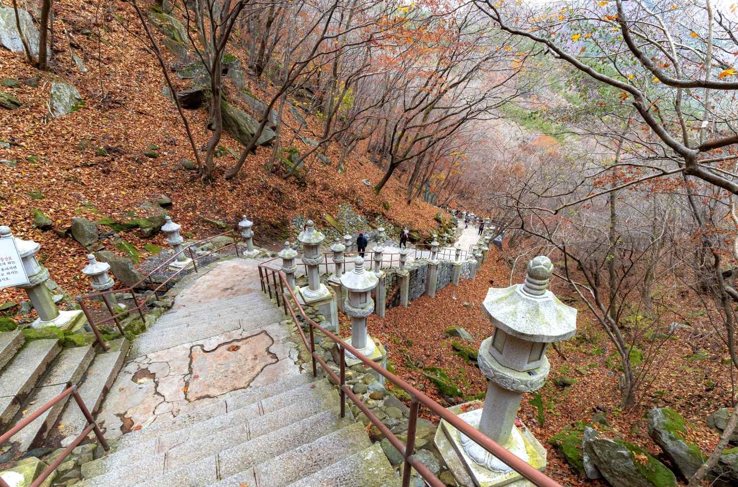 전체 계단 수는 약 1,200개 정도로 구성되어 있어 운동 겸 성지순례를 겸한 산행으로도 안성맞춤이에요. 정상 부근에는 쉼터와 전망대도 마련돼 있어 팔공산의 장엄한 경관을 한눈에 감상할 수 있답니다.