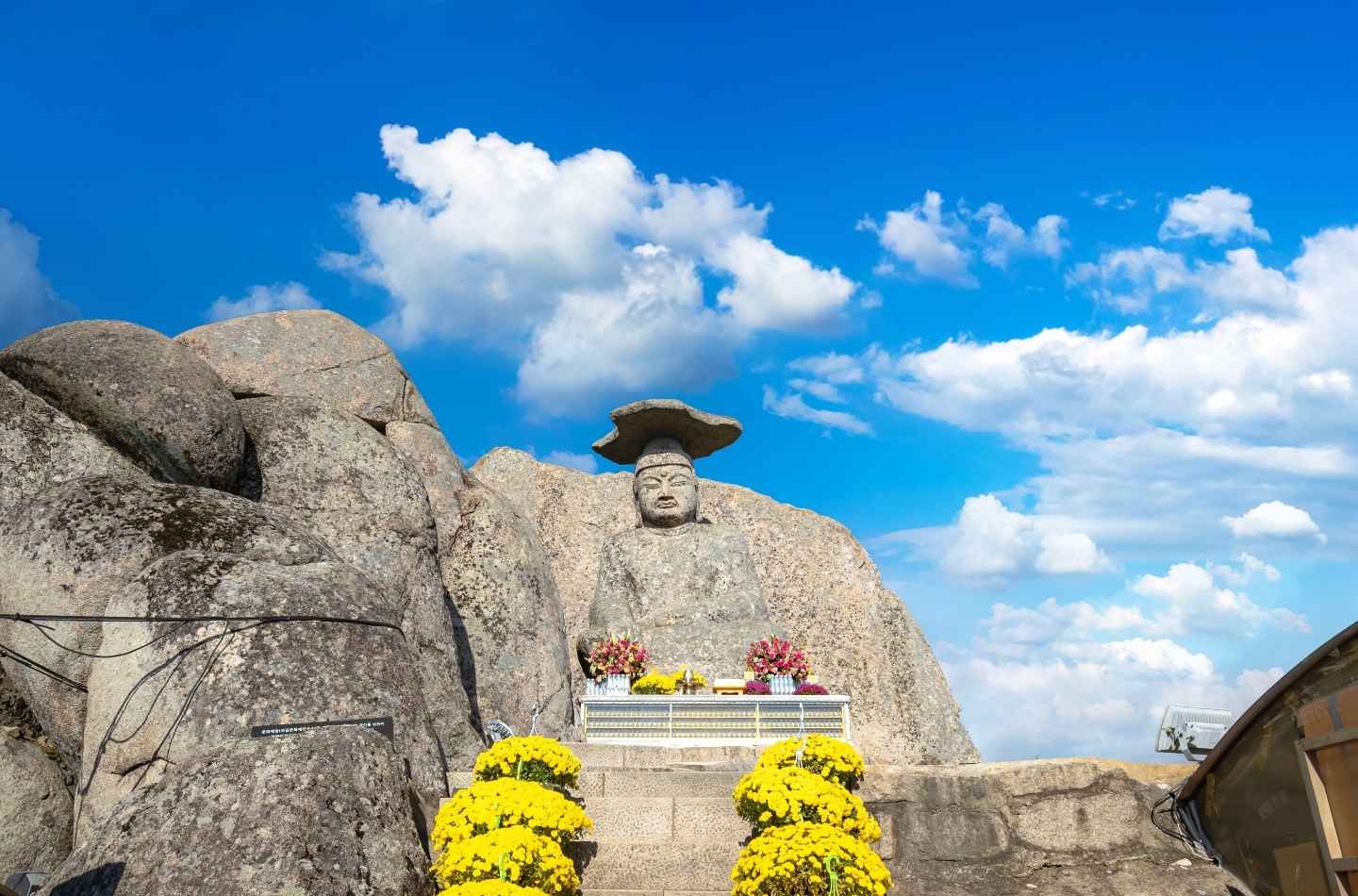불상의 머리 위에 얹어진 자연석 갓은 정말 신비로운데요, 이는 고려시대에 연꽃무늬 관을 따로 조각해 올린 것이라고 해요. 그래서 ‘갓바위’라는 이름이 생겼고, 한국 불교의 대표적인 기도처로 자리 잡았답니다.