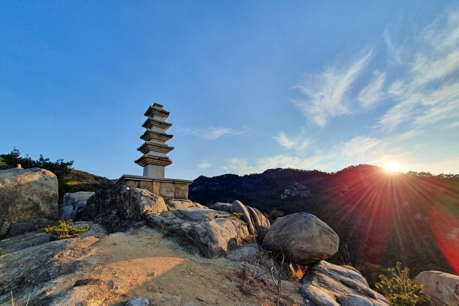늠비봉 오층석탑은 일몰 시간대에 가장 아름다운 모습을 보여줘요. 특히 겨울철에는 해가 일찍 지기 때문에, 탐방시간 내에 노을을 감상할 수 있는 최적의 시즌입니다.