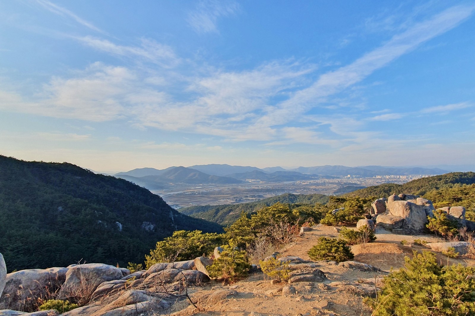 일출은 동남산, 일몰은 서남산 늠비봉이 정답입니다.
