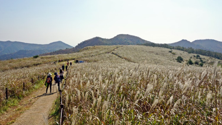 무장산 정상에 오르면, 탁 트인 초원과 끝없이 펼쳐진 억새밭이 여러분을 반겨줘요. 이곳은 원래 1980년대까지 목장으로 이용되던 곳이었는데, 목장이 폐업한 뒤 자연스럽게 억새가 자생하면서 지금의 모습을 갖추게 되었답니다.