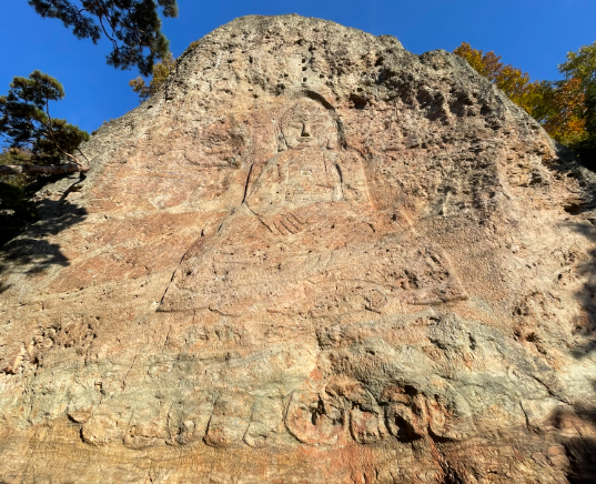 “미래에 다시 와서 중생을 구제하리라…” 그 약속을 담은 듯한 미소가 바위 위에 새겨져 있습니다.