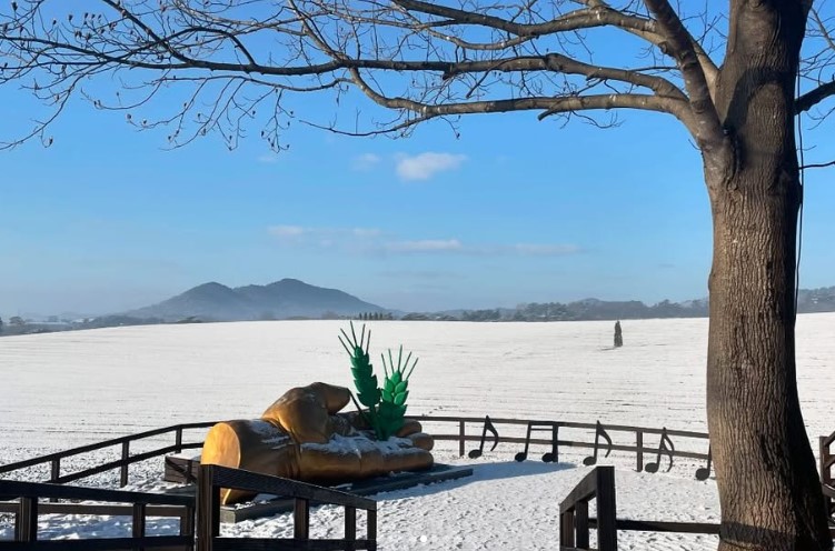 많은 분들이 보리나라 하면 봄의 푸릇푸릇한 청보리밭을 떠올리실 텐데요, 겨울의 설경도 절대 놓치지 말아야 할 감성 포인트랍니다! 끝없이 펼쳐진 들판 위로 소복소복 눈이 쌓이면, 하얀 순백의 평원처럼 변신한 보리나라가 눈앞에 펼쳐져요. 특히 일출이나 해질녘 시간대에는 눈밭 위로 퍼지는 따스한 햇살이 환상적인 분위기를 만들어내죠. 바람 한 점 없는 고요한 겨울 날, 이곳을 거닐다 보면 일상의 소음이 멀어지고 마음도 차분해지는 느낌을 받게 되실 거예요.