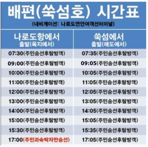 | 출발지 | 나로도연안여객선터미널 (전남 고흥군 봉래면 나로도항길 120-7) |