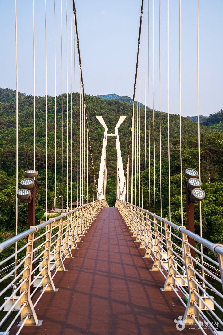 출렁다리 특성상 살짝 흔들리긴 하지만, 안전하게 설계되어 있으니 안심하고 건너셔도 됩니다.
