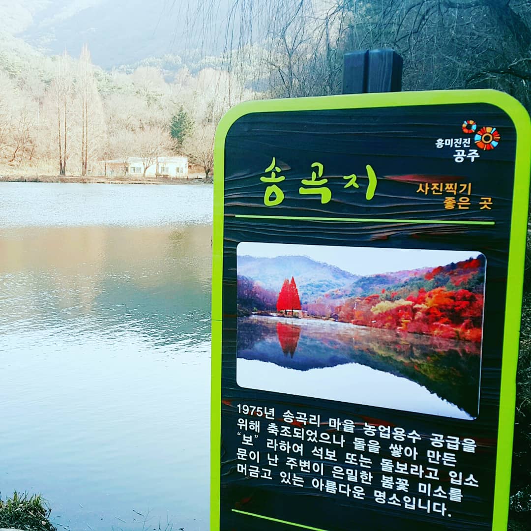 불장골 저수지는 충남 공주시 반포면 송곡리에 위치한 작고 아담한 규모의 소류지로, ‘송곡지’라고도 불립니다. 본래는 농업용수 저장을 위한 목적이었지만, 주변을 둘러싼 우산봉(계룡산의 줄기)과 나무들이 저수지를 감싸며 자연경관이 빼어나 사진작가와 여행자들 사이에 입소문을 탔어요. 저수지 바로 옆에 위치한 카페 & 식당 ‘엔학고래’도 이곳의 매력을 더해주는 요소예요. 맛있는 식사와 함께 감성 뷰까지 즐길 수 있어 힐링하기 딱이랍니다.