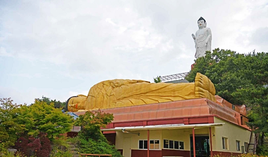 이곳은 1982년 주지 관묵 스님이 불사를 시작하면서 만들어진 사찰로 현재는 대웅전, 나한전, 천불전, 관음전 등 다양한 전각을 갖춘 기도 도량으로 자리 잡았습니다. 특히 높이 18m의 거대한 좌불과 여러 노천 불상들은 방문객들에게 다른 사찰과는 전혀 다른 분위기를 느끼게 해줍니다.