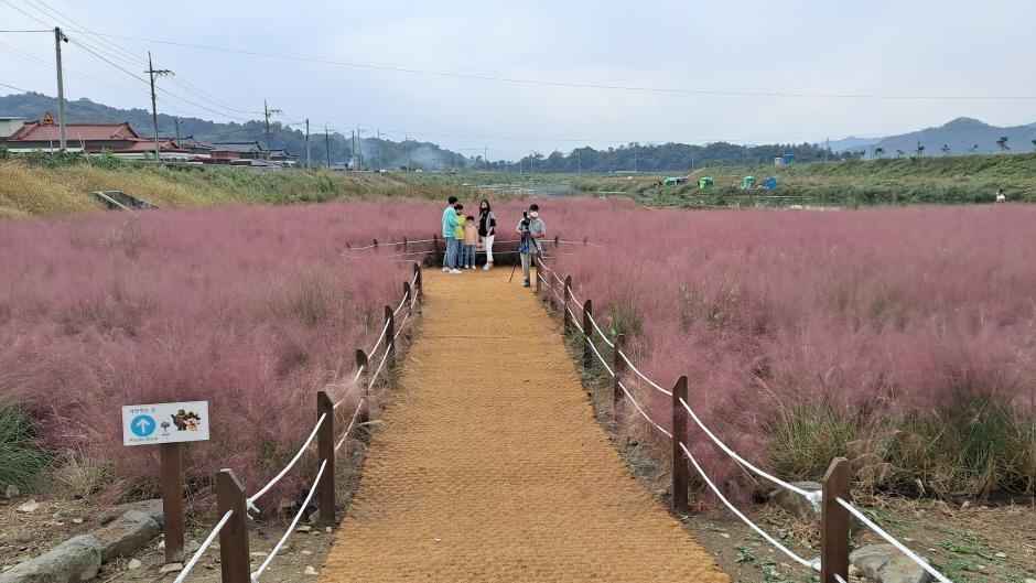 - 유구천 다리 근처: 핑크뮬리와 물길이 어우러지는 포토존