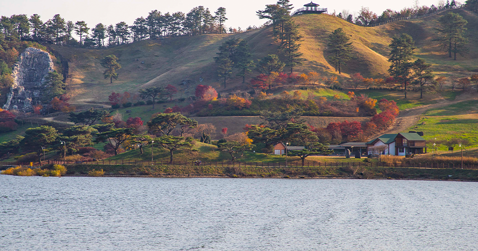 • 호수 산책로에서 지리산 뷰를 배경으로