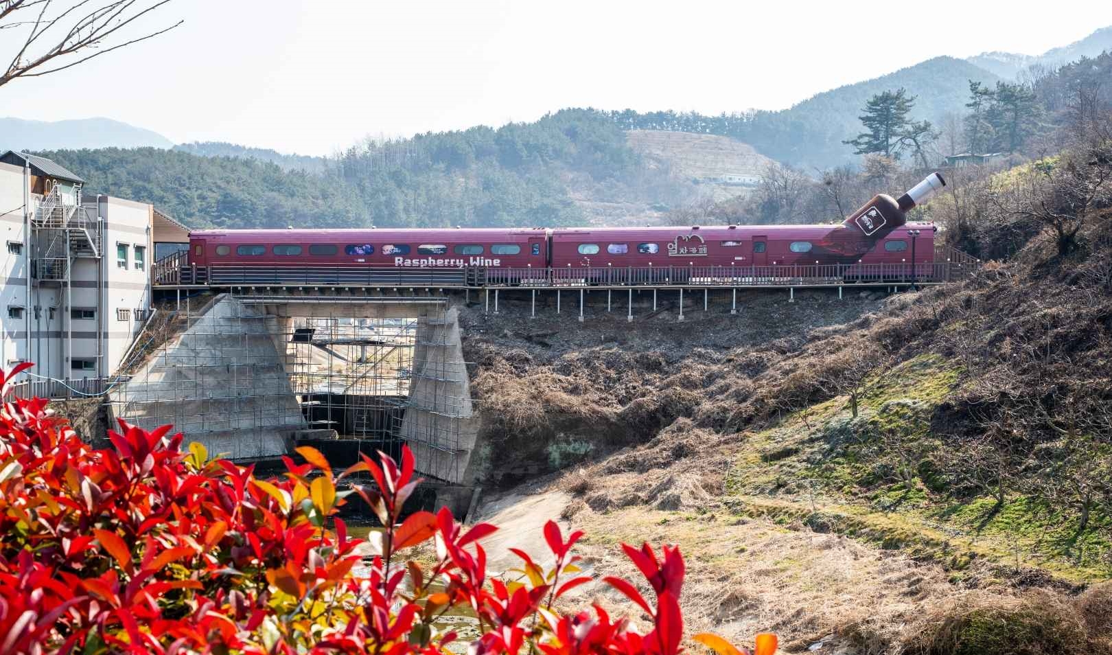 특색 있는 산딸기 와인을 주제로 한 체험 공간, 시원한 동굴 내부와 귀여운 포토존, 열차카페까지!