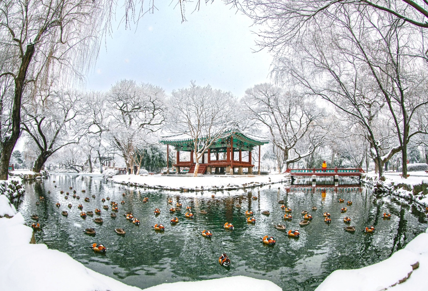 광한루원은 조선 전기인 1419년에 창건된 전라북도 남원의 대표적인 누각 정원으로, 춘향전의 배경지로도 유명해요. 특히 겨울이 되면 고풍스러운 광한루 위로 눈이 살포시 내려앉아 마치 조선시대 속으로 들어간 듯한 착각이 들 정도로 아름답답니다.