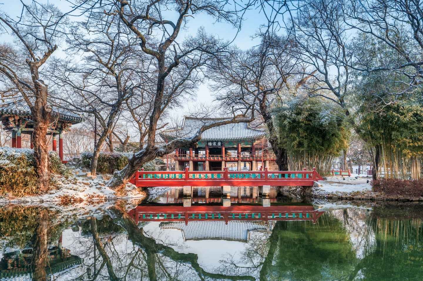 설경에 둘러싸인 연못과 오작교, 그리고 전통 건축물이 어우러지며 사진으로도, 눈으로도 그 가치를 고스란히 느낄 수 있어요. 이곳은 우리나라 4대 누각 중 하나로 꼽힐 만큼 역사적 가치와 건축미를 동시에 자랑하는 장소랍니다.