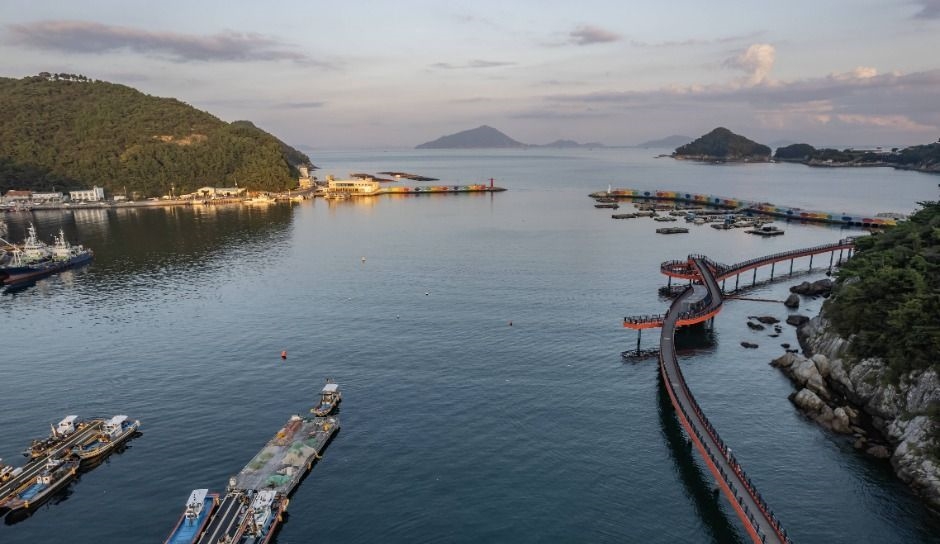 미조항 앞바다에는 바다 위를 따라 걸을 수 있는 해상산책로가 조성되어 있어요. 수면 가까이에 놓인 산책로를 걷다 보면, 파도 소리와 함께 남해 바다 특유의 청량한 에너지가 전해져 옵니다. 곳곳에 자리한 기암괴석과 작은 섬들, 햇살에 반짝이는 수면 위를 걷는 듯한 기분은 그야말로 최고예요. 무엇보다 조용한 분위기 덕분에 혼자만의 시간을 보내거나 연인과 데이트 코스로도 아주 좋은 장소랍니다.