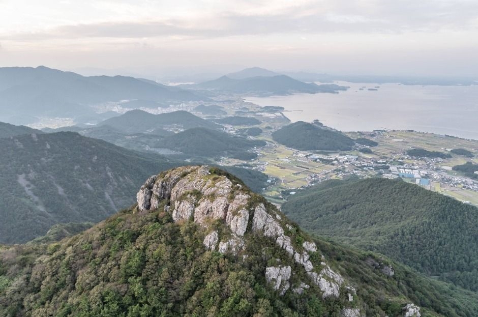 정상에서는 남해 바다와 주변 산세가 한눈에 내려다보이는 시원한 전망을 즐길 수 있어요. 특히 맑은 날에는 멀리 금산과 다도해 풍경까지 보인답니다!