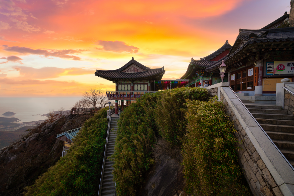 천상의 풍경을 담은 이곳은 바위 위에 세워진 신비로운 절 보리암한려해상국립공원의 비경을 한눈에 담을 수 있는 최고의 명소예요. 683년 원효대사가 초당을 짓고 관세음보살을 친견했다는 전설부터 조선 태조 이성계가 백일기도 끝에 조선을 열었다는 이야기까지! 역사와 기도, 풍경이 조화를 이루는 특별한 장소랍니다.