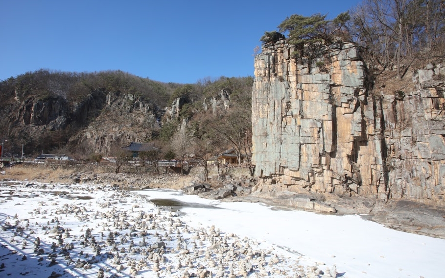 특히 나뭇잎이 모두 떨어진 겨울에는 시야를 가릴 요소가 없어 절벽 전체를 가장 온전히 감상할 수 있는 계절이기도 해요. 적당히 쌓인 눈까지 더해지면 마치 한국화 속 산수풍경이 현실이 된 듯한 장면을 만나볼 수 있어 겨울 여행지로 강력 추천드리고 싶은 장소예요 ❄️🏞