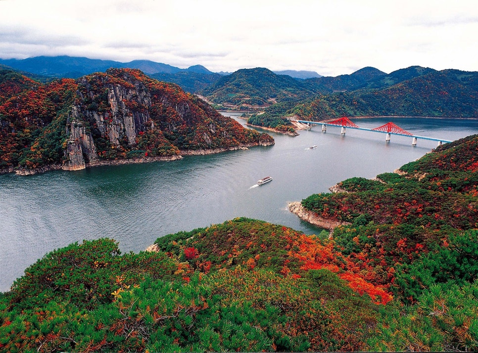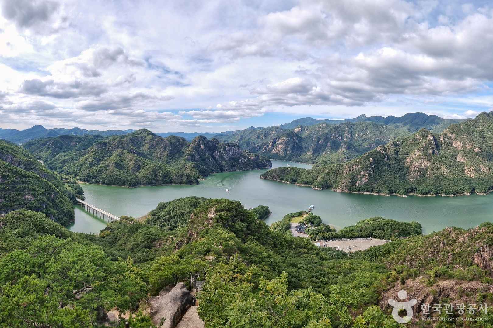 하늘을 닮은 푸른 충주호 물결 위로 솟아오른 암벽과 산세가 어우러져 마치 한 폭의 한국화를 보는 듯한 풍경이 펼쳐지죠. 조용히 물살을 가르는 유람선에 몸을 맡기면 바쁘게 지나간 일상에서 벗어나 자연과 하나가 되는 특별한 힐링을 경험할 수 있어요.