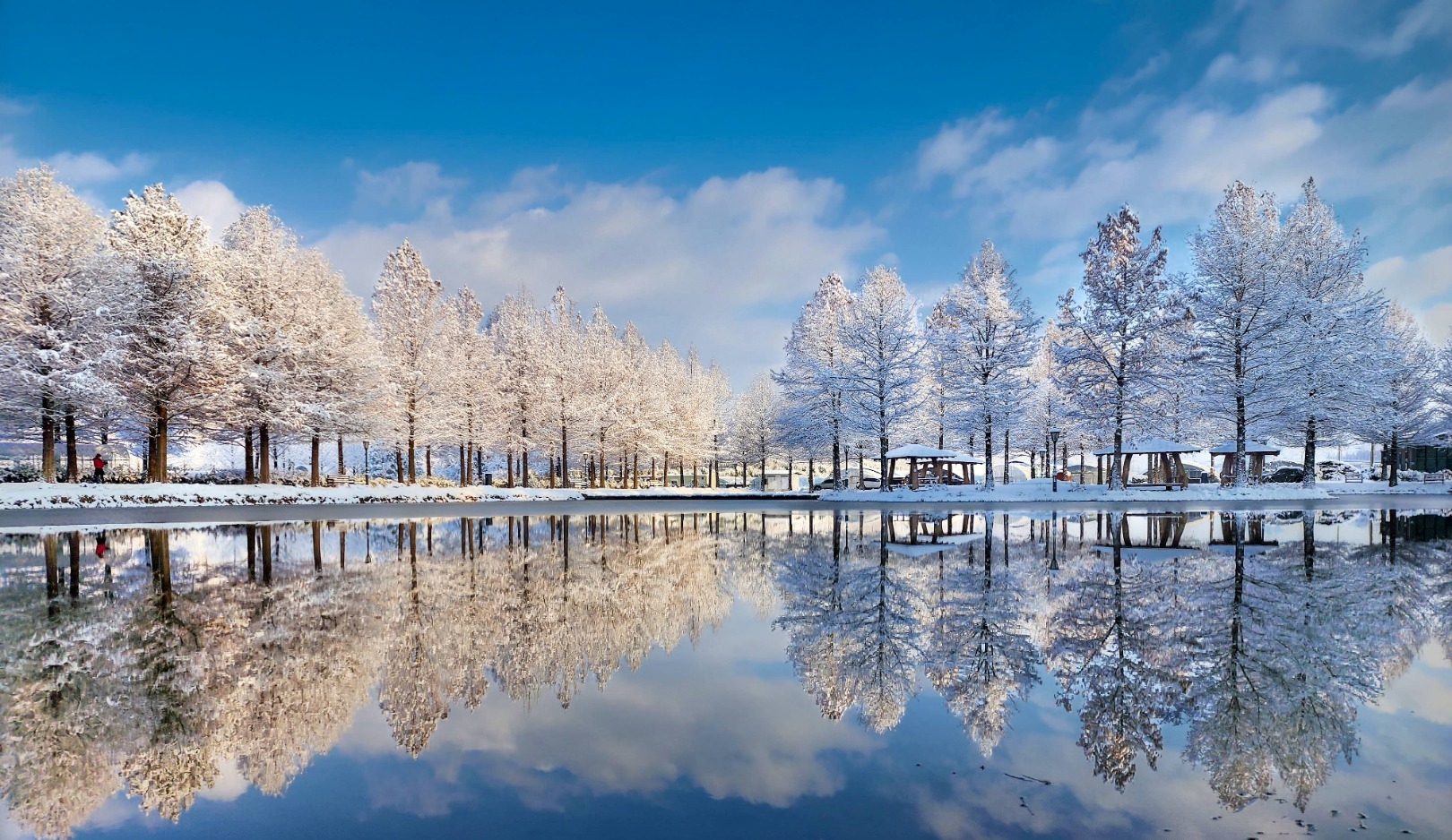 잎을 떨군 나무들은 언뜻 쓸쓸해 보이지만, 오히려 그 덕분에 하늘이 더 넓어 보이고 일직선으로 뻗은 나무들의 선이 더 도드라져서 사진을 찍으면 굉장히 감성적인 분위기가 살아난답니다.