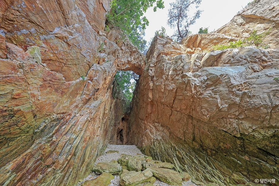 용천굴은 충청남도 당진시 석문면 장고항리에 위치해 있어요. 유명한 일출 명소 ‘노적봉’에서 뒷길로 조금만 들어가면 조용히 숨겨진 듯 모습을 드러낸답니다.