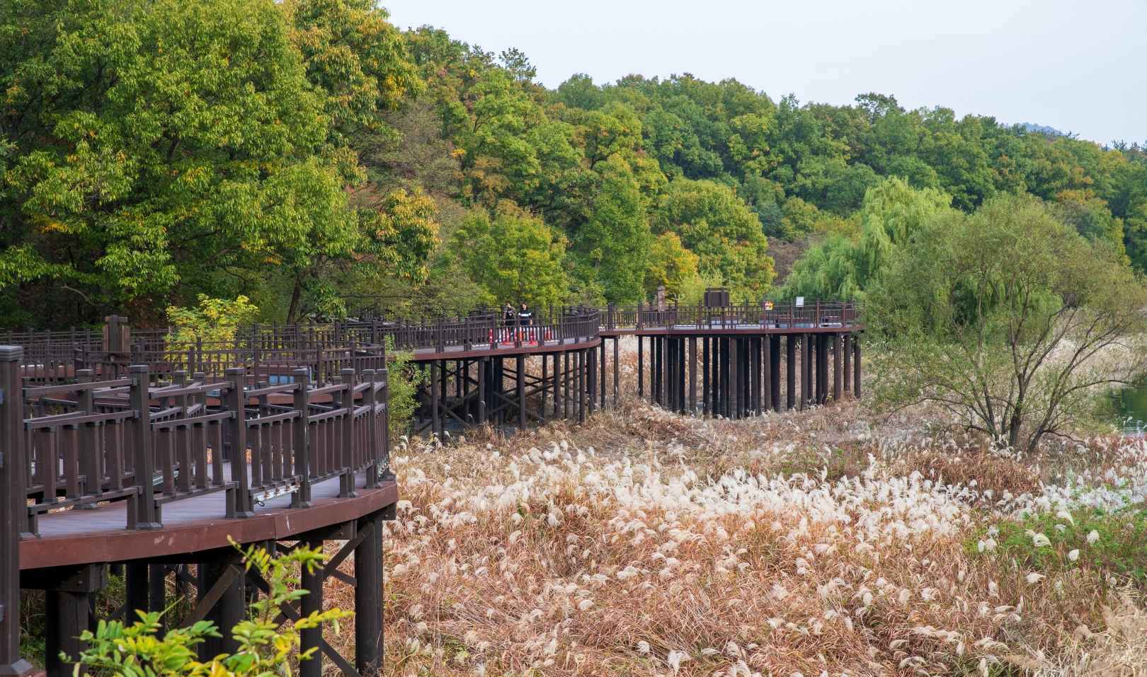 억새밭 중간에 설치된 나무데크길과 전망대는 인기 촬영 스팟이에요. 특히 해 질 무렵 방문해 보세요!