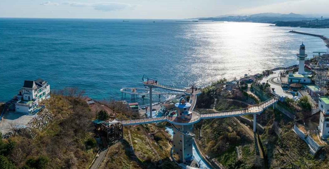 강원도 동해시 묵호등대와 월소택지 사이, 푸른 바다와 맞닿은 절경에 위치한 도째비골 스카이밸리! ‘도째비’는 ‘도깨비’의 방언으로, 지역적 특색이 담긴 이름이에요.