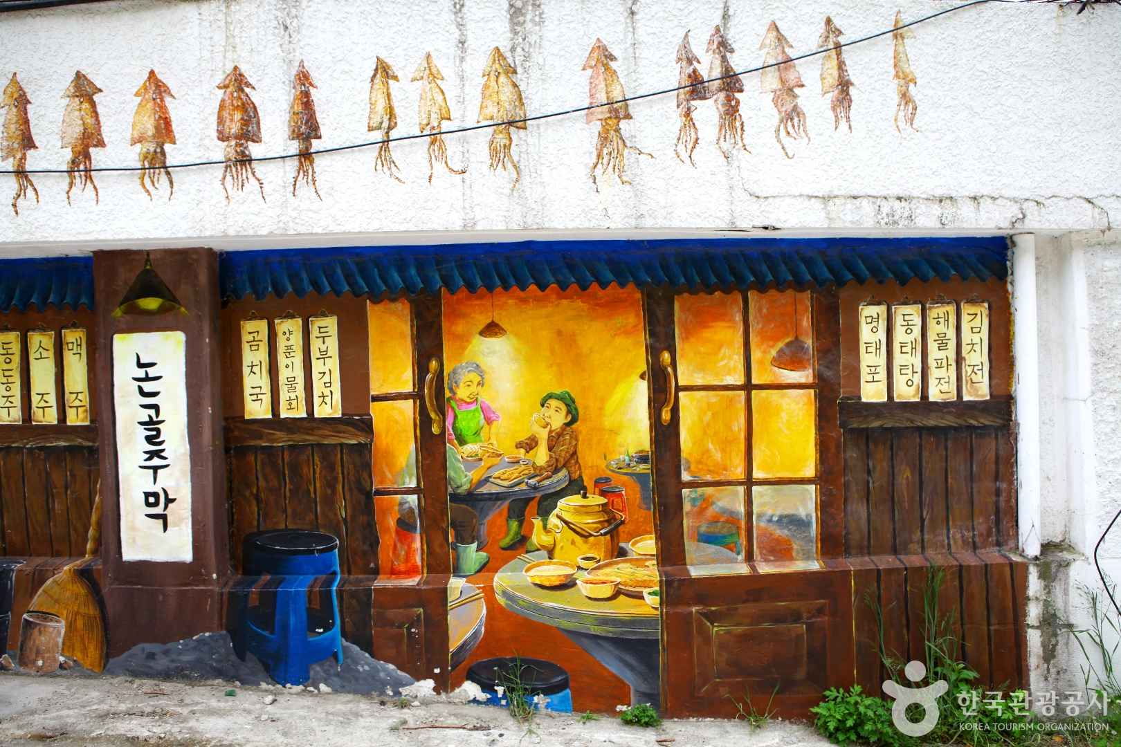 논골담길 벽화마을은 단순한 벽화거리가 아니에요. 1941년 개항한 묵호항의 역사와 삶의 흔적이 곳곳에 담긴 감성적인 스토리 마을이죠. 2010년, 동해문화원이 주관한 ‘어르신 생활문화전승사업’의 일환으로 묵호등대담화마을 프로젝트가 시작되었고, 지역 어르신들과 예술가들이 손을 맞잡아 지금의 모습이 완성되었습니다. 담장마다 그려진 그림은 단순한 예술이 아닌, 마을 사람들의 기억과 이야기를 담은 진짜 감성이에요. 천천히 걸으며 그 속의 의미를 음미해보세요.