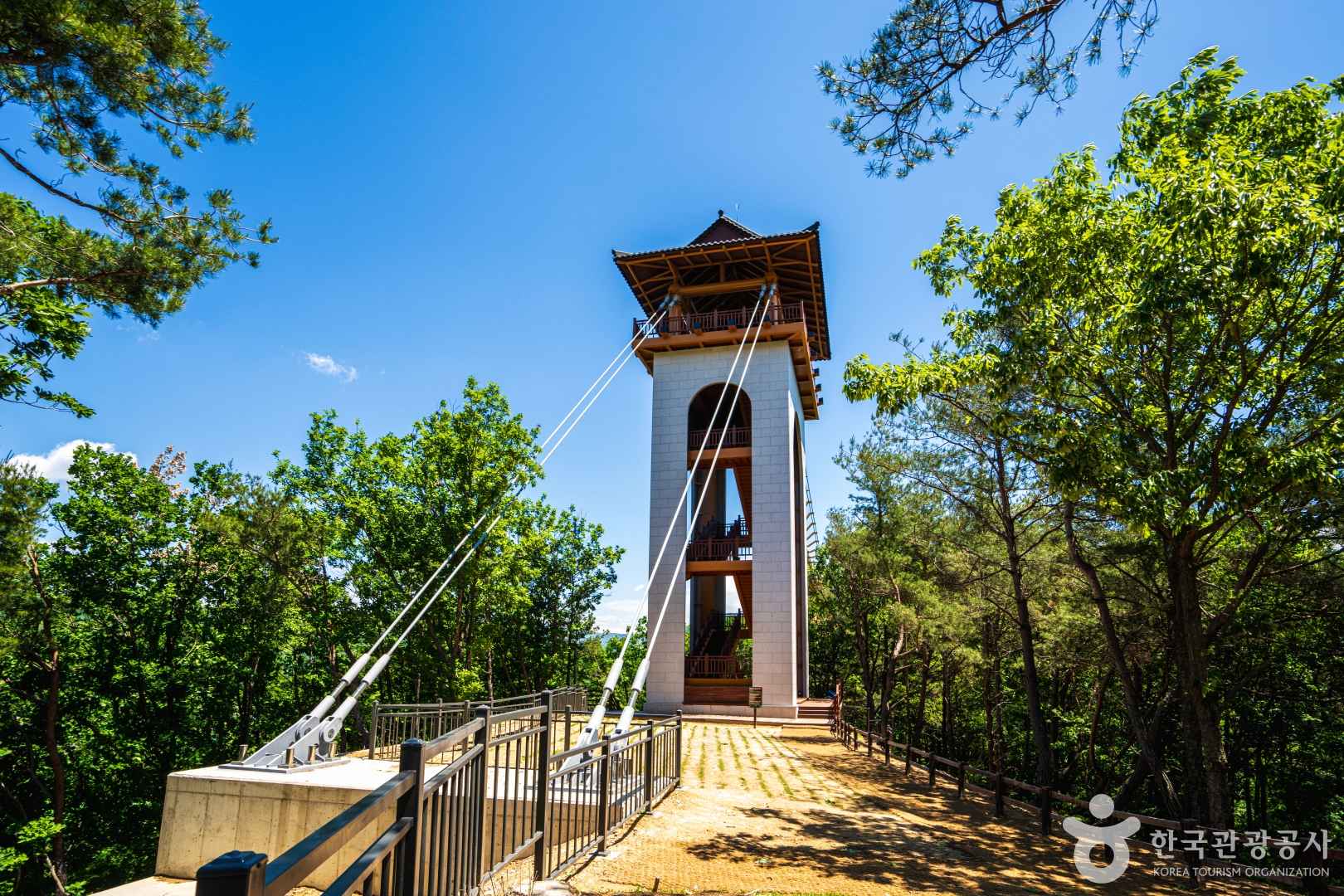 주차장에서 약 10분 정도 가벼운 산책 코스를 오르면 도착할 수 있어요.