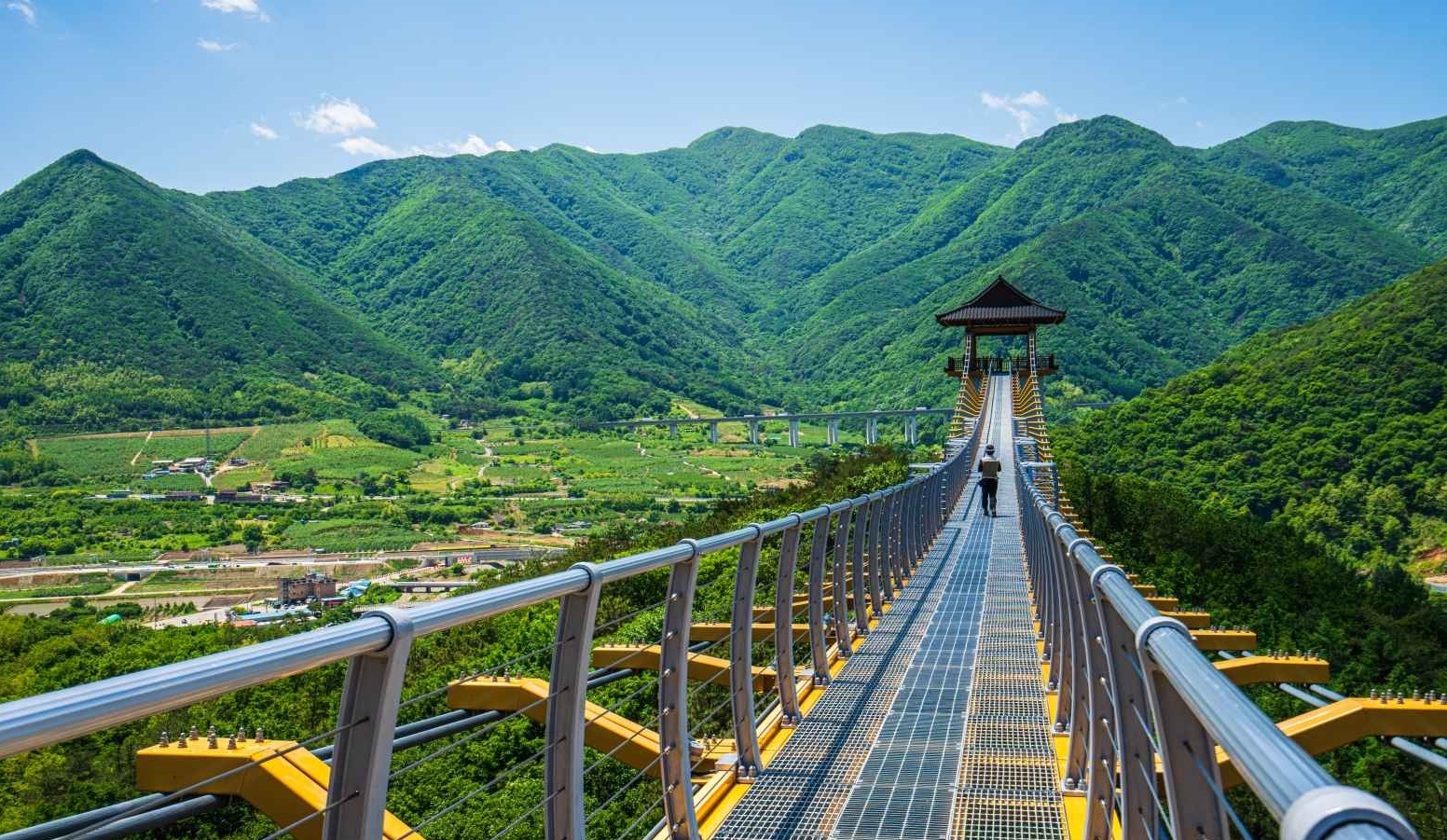 경북 문경시 문경읍 마원리에 위치한 봉명산 출렁다리는 주흘산과 문경읍, 조령천까지 내려다보이는 탁 트인 뷰로 많은 이들의 인생샷 명소로 자리 잡은 곳이에요. 이 출렁다리는 - 길이: 160m - 보행 폭: 1.5m - 최대 높이: 33m 의 보행 전용 현수교로, 발 밑이 스틸 그레이팅과 유리바닥으로 되어 있어 스릴 넘치는 감각을 선사하죠 😲 입구부터 약 도보 10분 정도 산책 후 도착할 수 있어, 간단한 산책 코스로도 인기가 높아요.