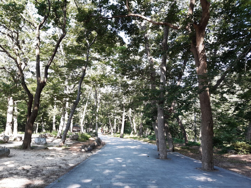 시전마을~표충사 구간은 나무 그늘이 가득해서 여름에도 햇볕 걱정 없어요 🌳 도착 전부터 기분 좋은 바람이 반겨준답니다.