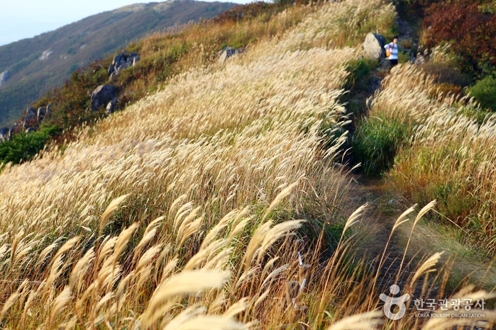 등산로 중 정상 500m 전방 구간이 억새가 가장 빽빽하고 멋있어요.
