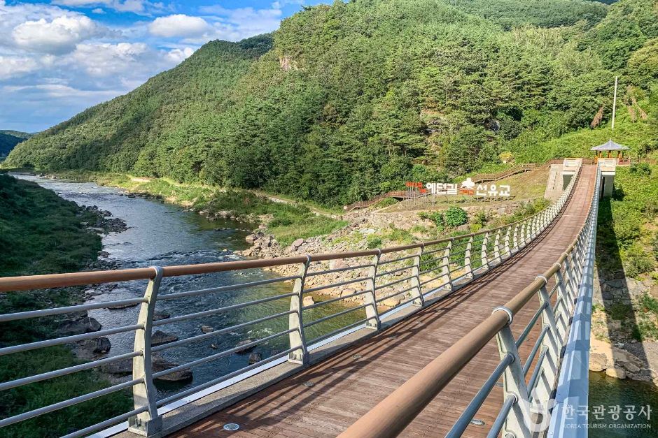 네 있습니다. 선유교 옆으로는 예던길 산책로가 이어져 있어 자연 속에서 여유로운 산책을 즐길 수 있습니다. 이 길은 과거 선비들이 다니던 길로 알려져 있어 역사적인 의미도 함께 느낄 수 있습니다.