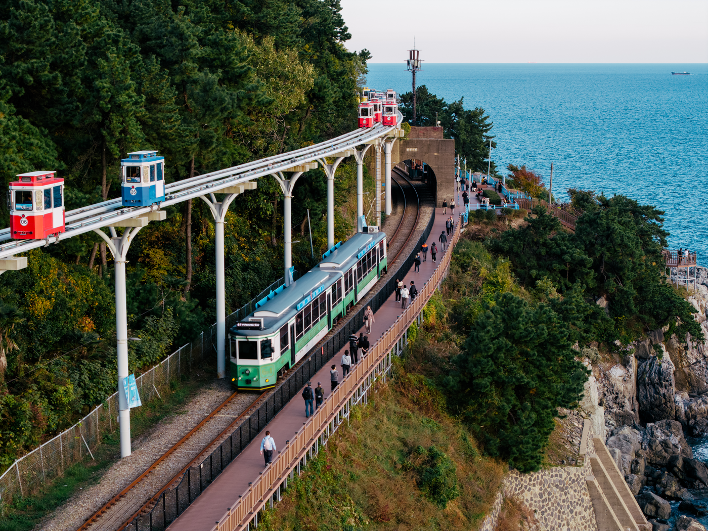 푸른 바다와 이어지는 철길 풍경, 천천히 달리는 해변열차, 그리고 하늘 위를 달리는 듯한 스카이캡슐까지 이곳에서는 부산 바다의 매력을 다양한 방식으로 경험할 수 있습니다.
