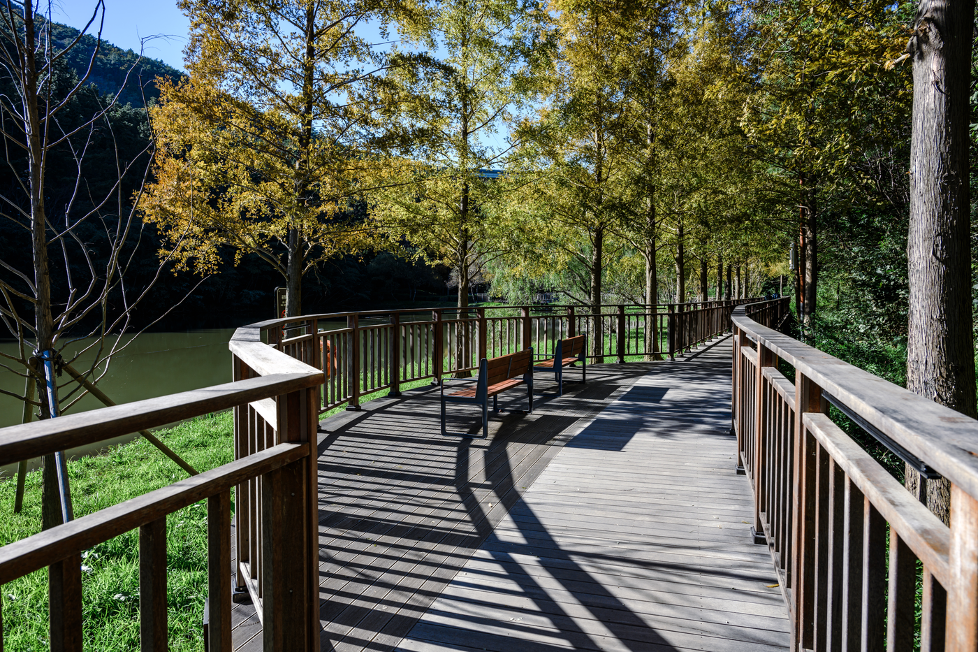 산책로 곳곳에는 벤치, 흔들의자, 정자와 같은 휴식 공간이 마련돼 있어 잠시 앉아 풍경을 감상하거나 사색에 잠기기에도 아주 좋아요. 저수지 위로 놓인 작은 전망대에 오르면 수생식물이 가득한 수면 위 풍경이 그림처럼 펼쳐진답니다.