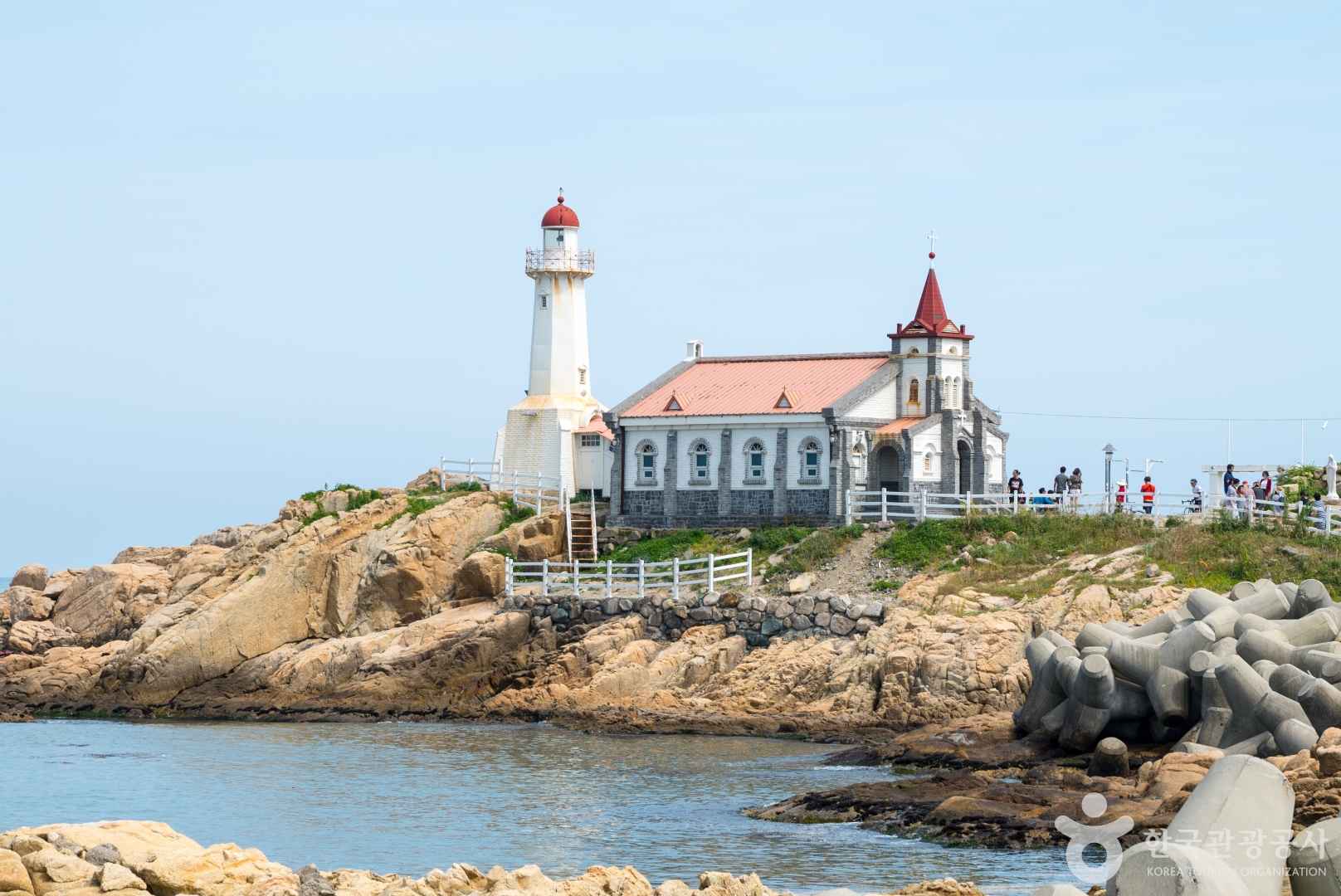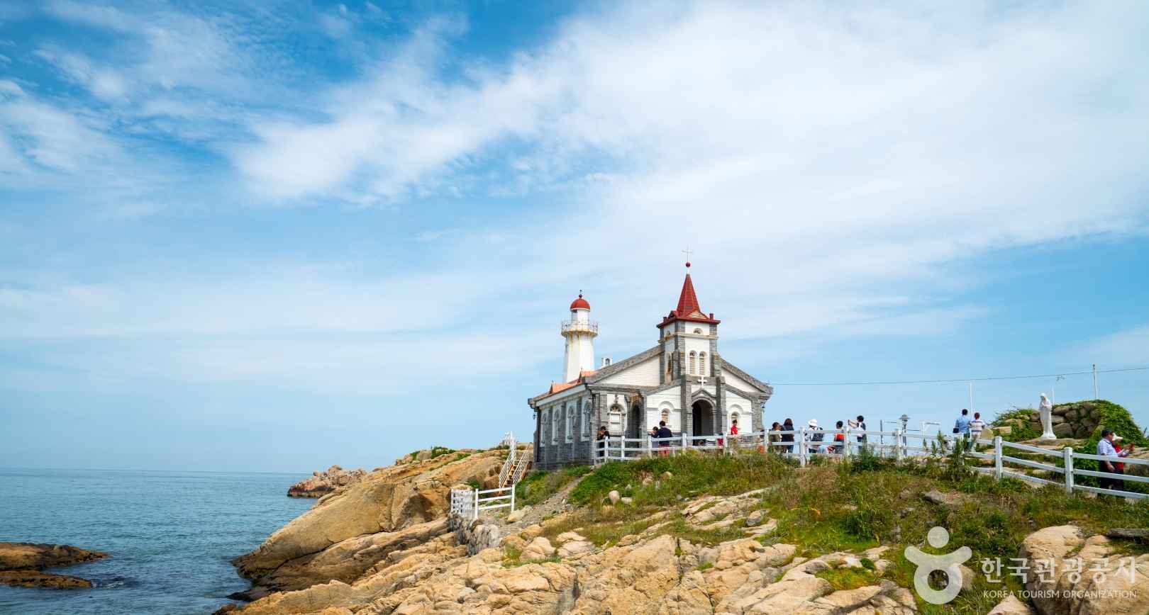 중세 유럽 분위기를 풍기는 붉은 지붕의 하얀 성당이 바닷가에 자리잡고 있어 마치 외국 여행지에 온 듯한 기분을 느낄 수 있어요. 성당 내부는 갤러리로 운영되기도 하며, 전시 일정에 따라 새로운 볼거리도 경험할 수 있어요.