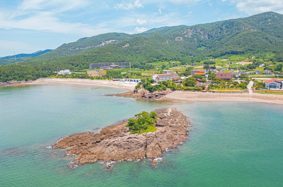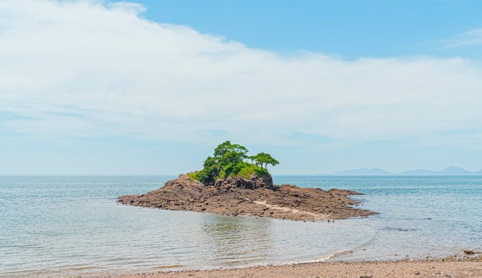 썰물 시간대에는 해안과 연결되어 도보로 접근이 가능해요. 단, 물때를 꼭 확인하고 이동하세요.