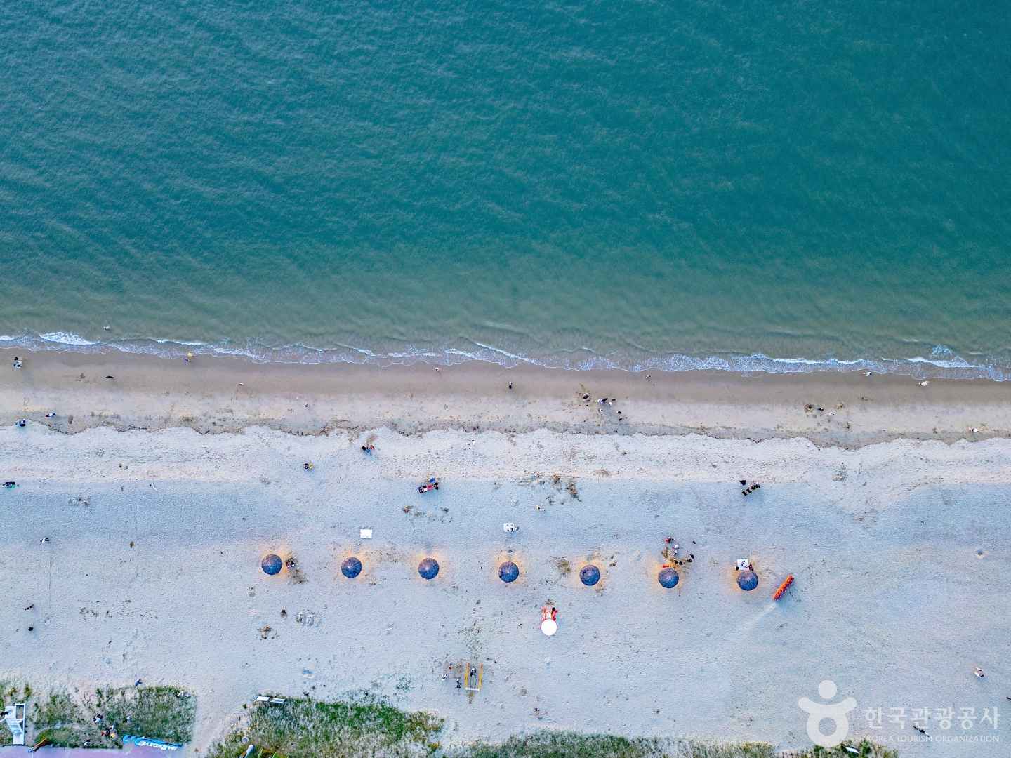 1933년에 개장된 우리나라에서도 손꼽히는 역사 깊은 해수욕장이며, 평균 수심이 1m로 얕고 수온도 따뜻해 아이들과 함께 안전하게 물놀이를 즐기기에 아주 좋아요. 그리고 서해안인데도 맑은 물빛을 자랑해 여름철 피서지로 인기 만점이랍니다!