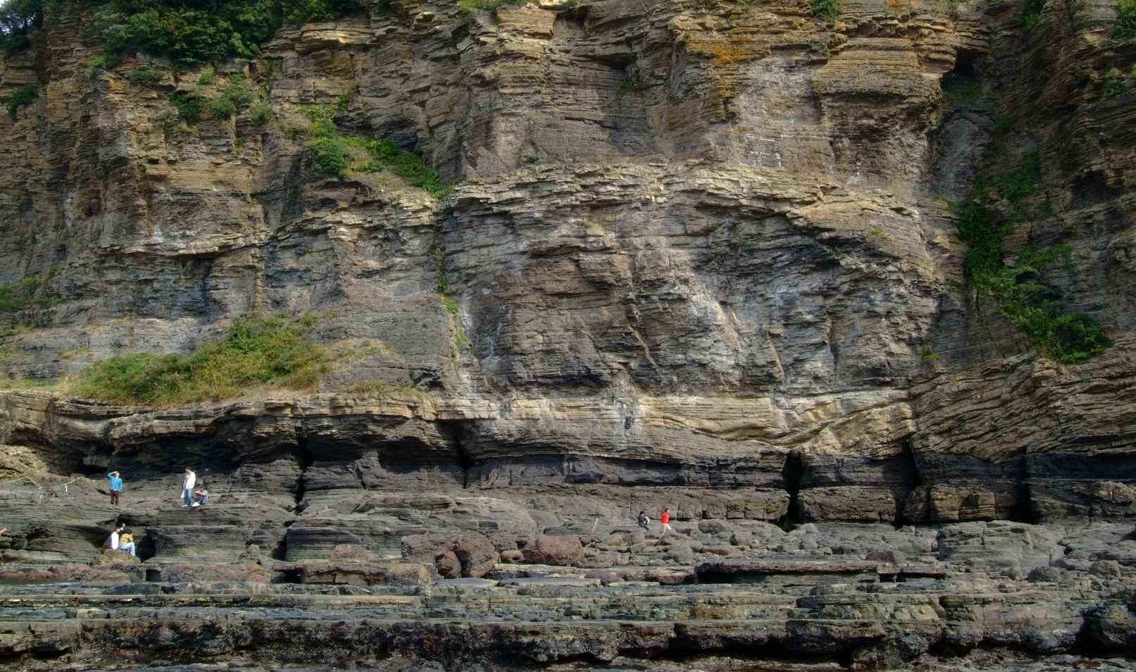 채석강은 약 7천만 년 전 중생대 백악기부터 형성된 퇴적암 지형으로, 파도에 의해 침식된 퇴적암 절벽이 거대한 장관을 이룹니다. 이곳의 퇴적층은 격포리층이라 불리며, 역암, 사암, 이암, 셰일, 화산회 등이 층을 이루며 아름답고 독특한 지질학적 구조를 보여주죠.