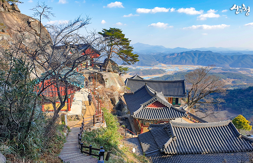정취암 전망 정취암이 자리한 대성산 기암절벽은 전망이 아주 멋져요. 사찰을 감싸는 자연의 기운 속에서 바라보는 풍경은 힐링 그 자체랍니다.