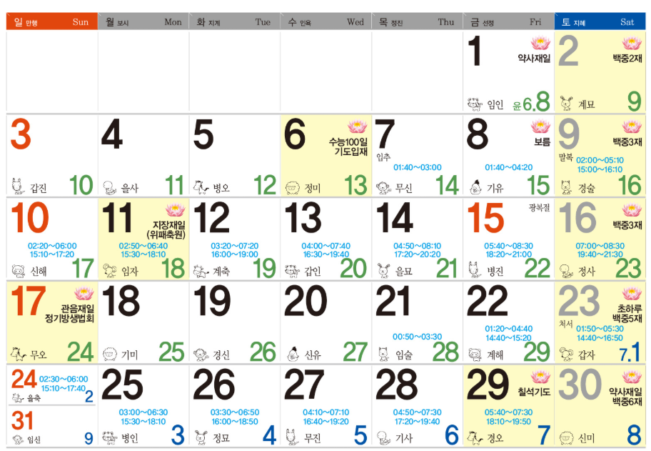 간월암을 제대로 즐기기 위해선 물때 시간표 확인은 필수! 파란색으로 표시된 시간은 바닷물이 차올라 간월암에 도보 진입이 불가능한 만조 시간을 의미해요. 이때는 암자가 마치 바다 위에 떠 있는 듯한 모습을 볼 수 있어 사진 찍기에 딱 좋은 타이밍이기도 하답니다! 📸 실시간 물때 정보는 아래 공식 홈페이지에서 확인해 주세요: