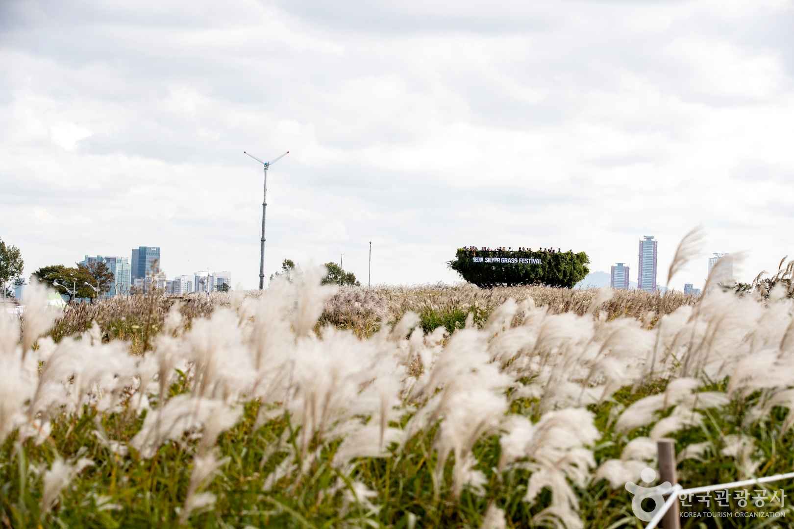 - 풍력발전기 배경:하늘과 바람, 억새가 어우러진 드라마틱한 구도