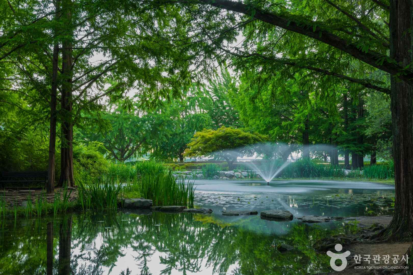 에 자리잡은 도심 속 자연 쉼터예요. 이곳은 연못, 나무길, 벤치, 산책로, 정원 등이 조성되어 있으며, 사람들에게 ‘한국의 지베르니’라고 불릴 만큼 아름다운 풍경을 자랑합니다. 메타세쿼이아와 전나무가 어우러진 숲길, 연못 위를 가로지르는 돌다리, 아늑한 오솔길은 마치 동화 속 장면처럼 환상적인 분위기를 선사해요.