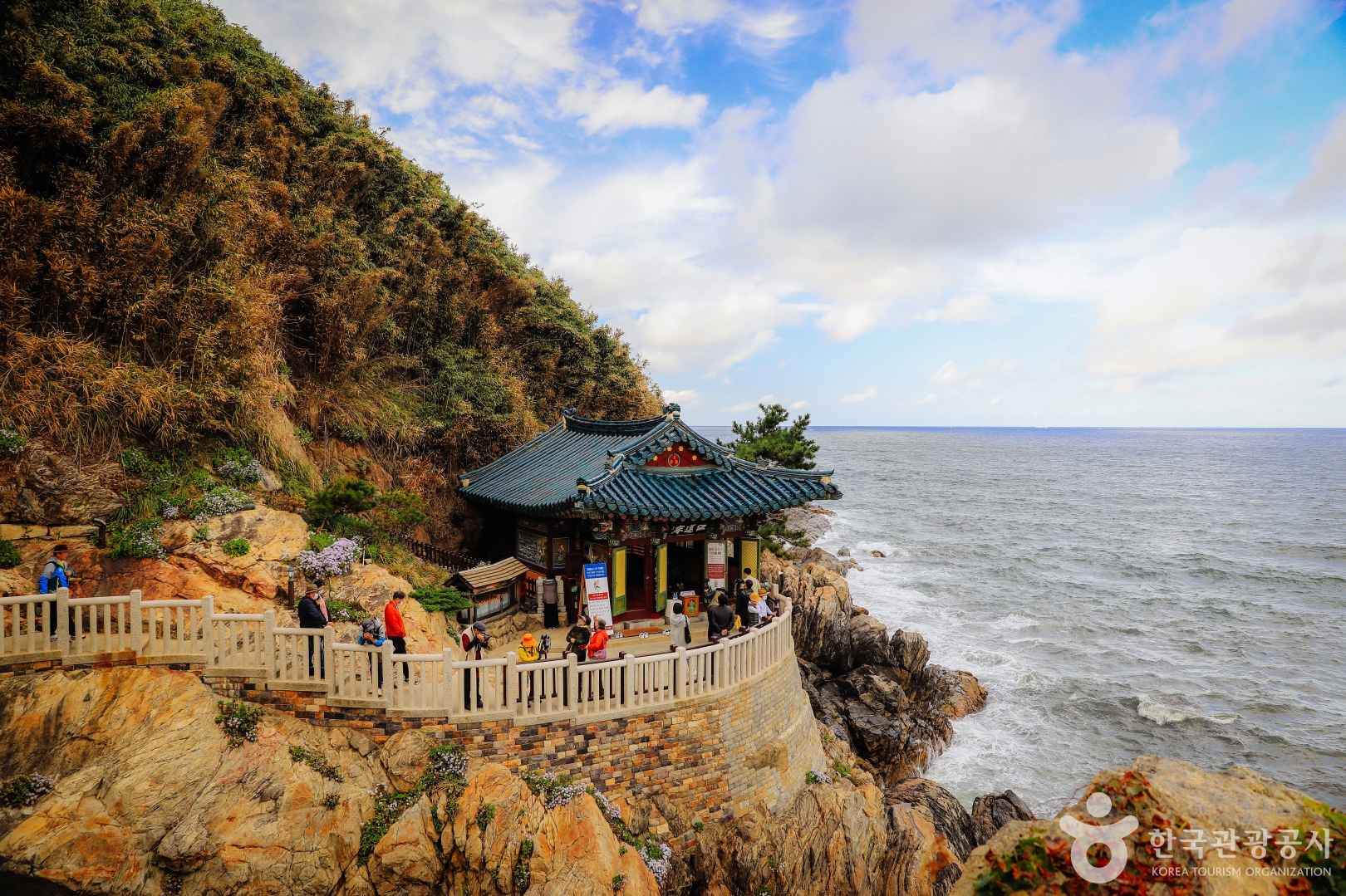 의상대에서 내려가는 길을 따라 걷다 보면 만날 수 있는 홍련암. 바닷가에 자리한 이 암자는 파도 소리와 함께 수행의 고요함을 느낄 수 있는 명소예요. 그 아래에는 신비로운 관음굴이 있어, 천천히 들어가 보면 자연이 만든 동굴의 생생한 기운을 직접 느낄 수 있답니다.