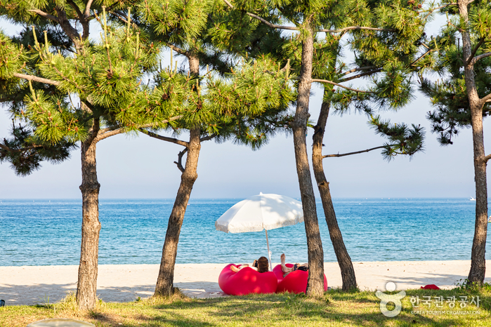 백사장 위에 최대 300동의 텐트 설치가 가능한 넓은 공간이 있어 캠핑 마니아들도 많이 찾는 해변이에요. 밤바다를 배경으로 모닥불과 함께 힐링하는 시간이 기다리고 있어요.