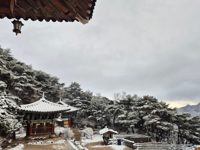 복잡한 도심을 벗어나 소복이 쌓인 눈길을 따라 걸으며 천년 고찰의 품에서 조용히 호흡을 고르고, 따뜻한 차 한 잔의 여유를 느껴보는 건 어떨까요?