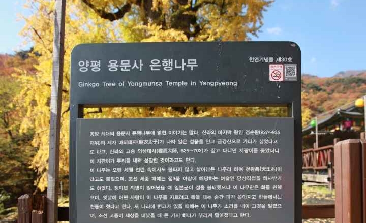 오늘 소개할 곳은 바로 경기도 양평에 위치한 용문사, 그리고 그 앞을 지키는 1,100년 된 거대한 은행나무예요. 봄부터 겨울까지 계절마다 다른 풍경을 선사하지만, 특히 가을의 황금빛 단풍은 정말 감탄이 절로 나올 정도랍니다! 그럼, 이 거대한 생명체와 함께 시간 여행을 떠나볼까요?
